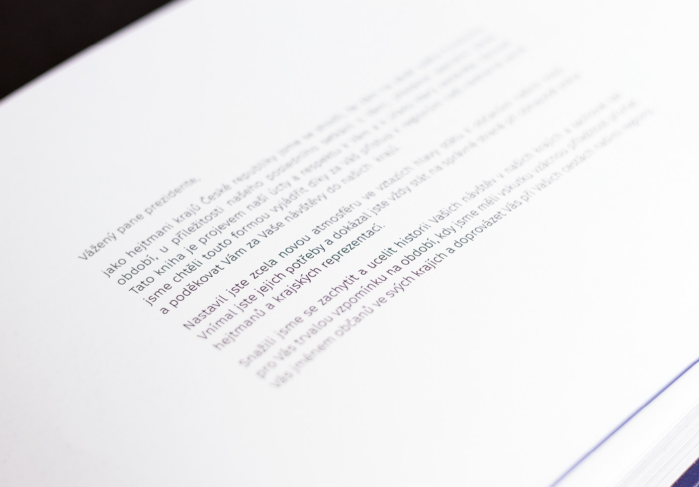 Kniha obsahuje fotky z návštěv ve všech krajích, jako poděkování panu prezidentovi. Práce na knize obsahovaly návrh, sazbu textů a přípravu fotek k tisku. Dále pak zajištění tisku, včetně zajištění potažení obálky kůží s ražbou loga AKČR.